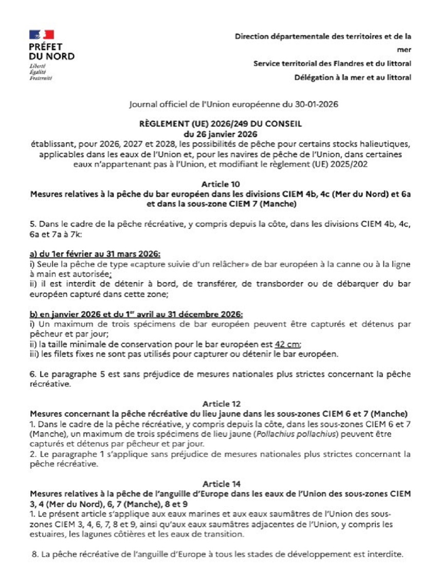 Par Comme ça de France, vendredi 30 janvier 2026 à 09:55 :: REGLEMENTATION DE LA PECHE DU Nord (65) :: #439 :: rss